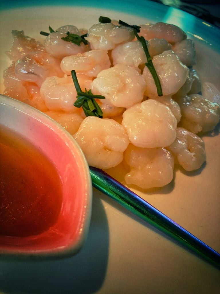 Garnalen met Longjing groene thee 龙井虾仁 oftewel Lóng jǐng xiā rén, ook bekend als Garnalen met Drakenput thee, een typisch recept uit Hangzhou, provincie Zhejiang, waar we ze hebben geproefd tijdens onze reis in januari 2024.