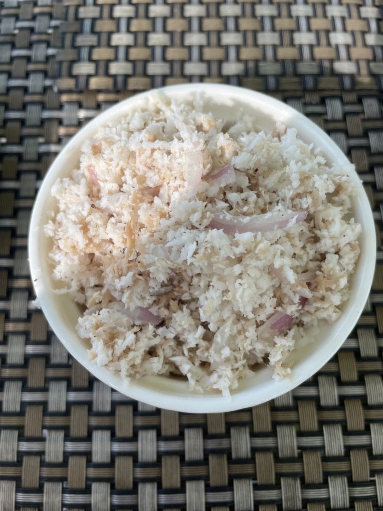 Het is een koude salade op basis van tonijn (vaak gerookt of ingeblikt, zie hieronder), geraspte kokosnoot, ui en chilipeper, erg vergelijkbaar met de pol sambol uit Sri Lanka.