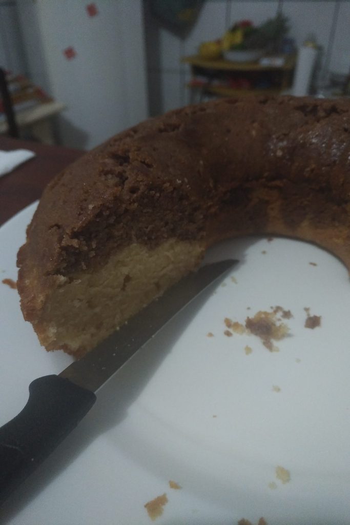 Mesclado” betekent gemengd in het Portugees. Deze typische Braziliaanse ontbijttaart is inderdaad een mengsel van wit en zwart.