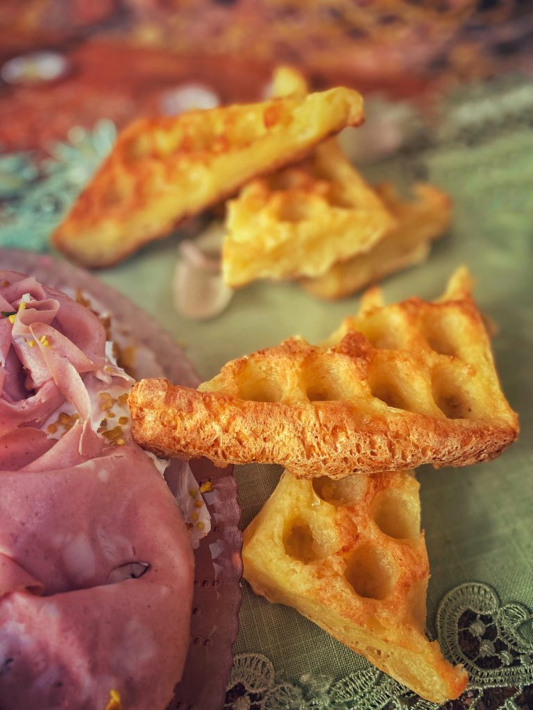 Ik heb ook een “wafel” versie gemaakt door het deeg in een speciale siliconen mal te doen en te bakken in de oven op 180°C gedurende 25 minuten.