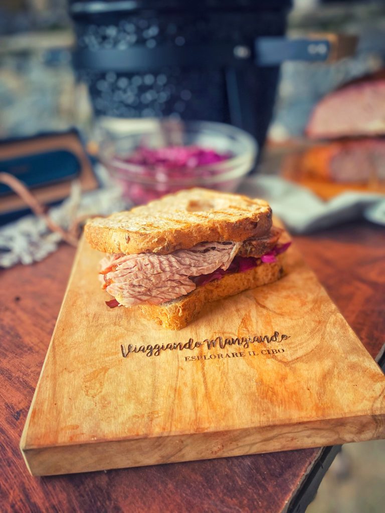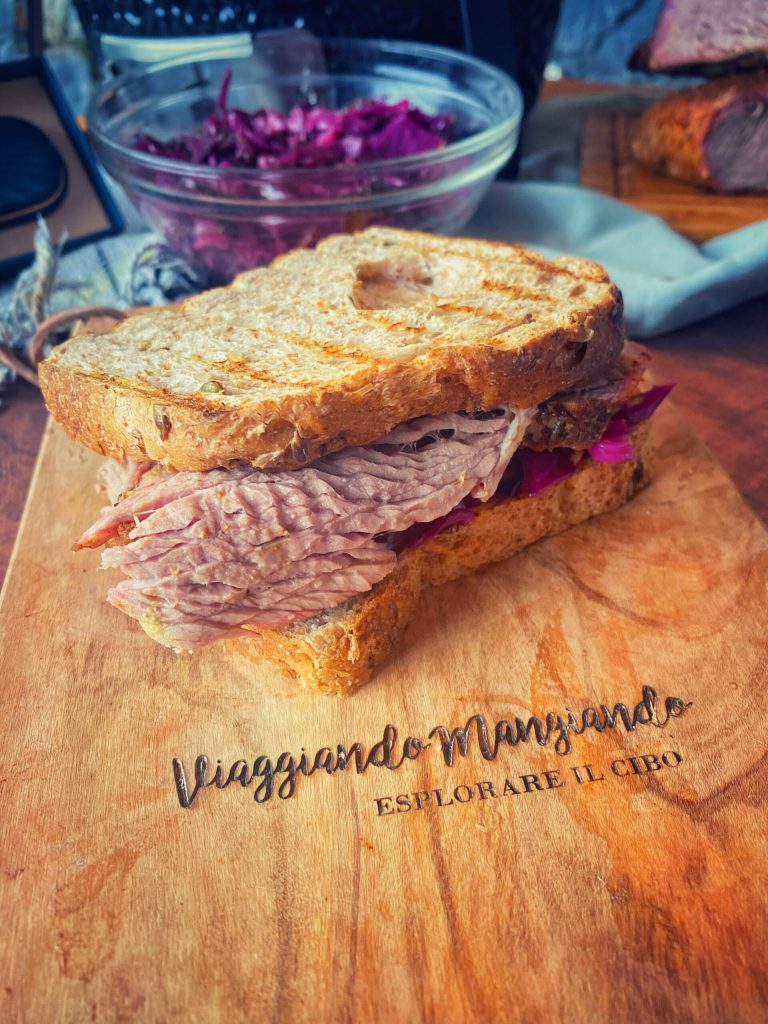 Heerlijk gekruid vlees ingeklemd tussen twee sneetjes roggebrood, dat over de oceaan werd geëxporteerd met de migratiestroom van de tweede helft van de 19e eeuw naar Amerika.