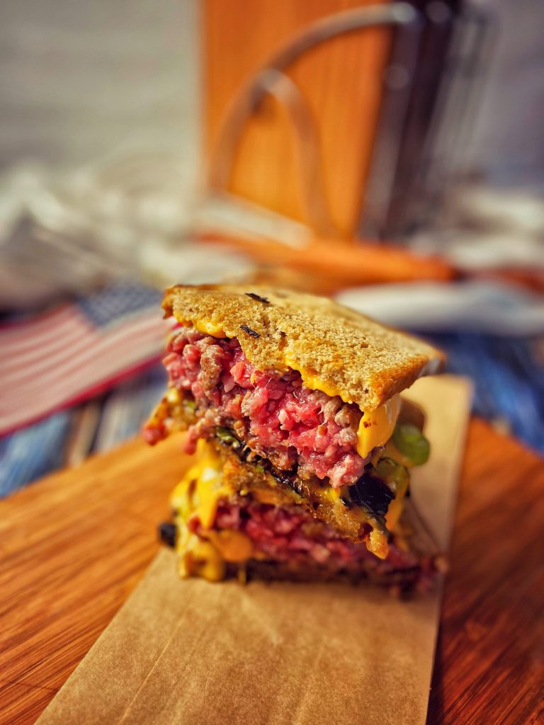 De Patty melt is een gegrilde Amerikaanse sandwich bestaande uit een beefpatty, gesmolten kaas (meestal Zwitsers) en gekarameliseerde uien tussen twee sneetjes roggebrood.