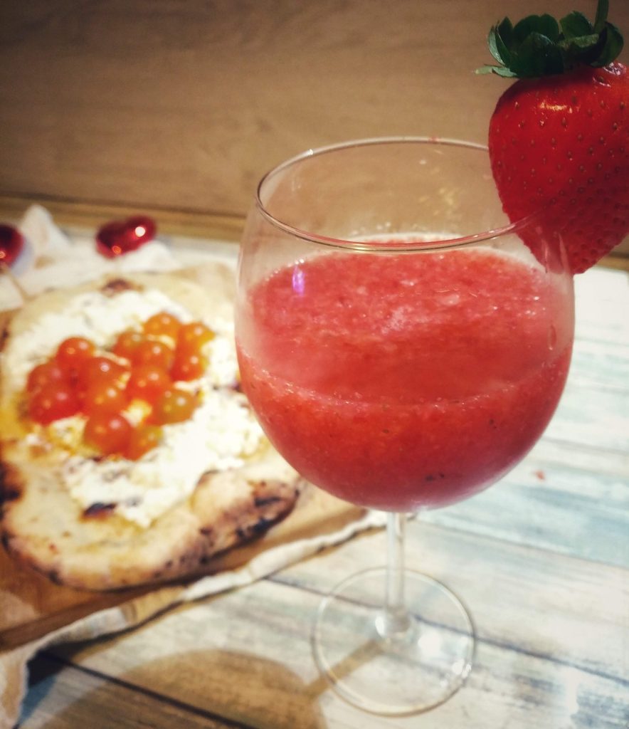 Het gaat om de Pinsa van Valentijnsdag, een hartvormige versie van de Romeinse pinsa, vergezeld van de rode Bevroren Aardbei Daiquiri.