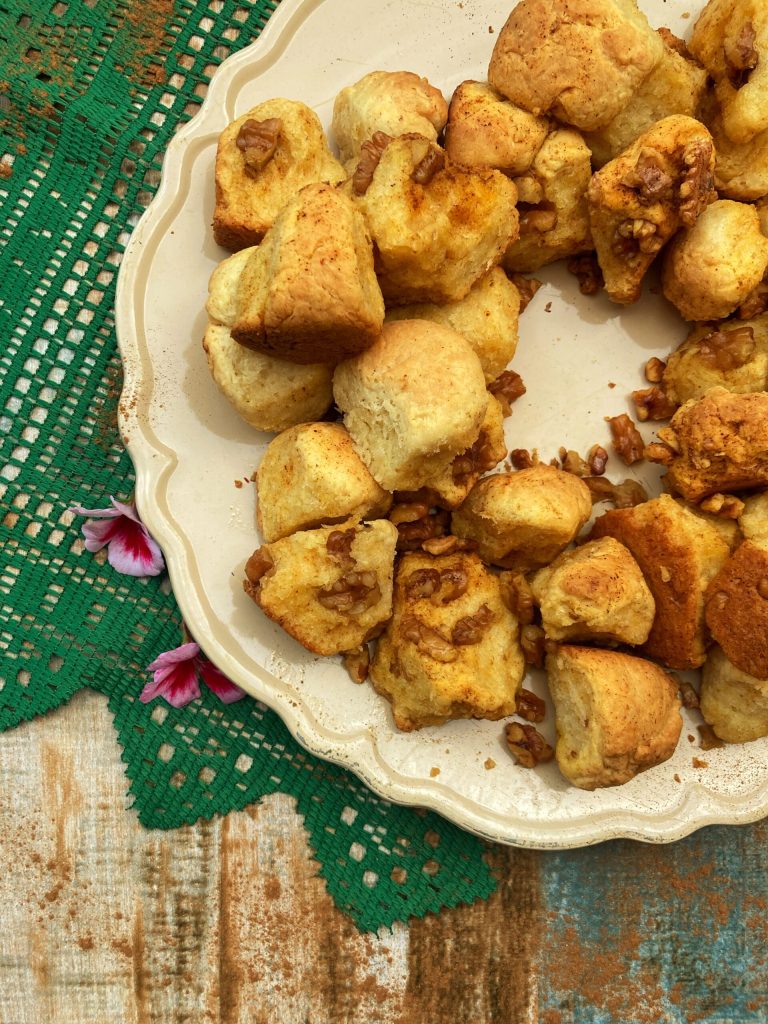 Het staat ook bekend als “apenbrood” (monkey bread) omdat het een fingerfood is, stuk voor stuk met de handen gegeten, zoals een aap zou doen.