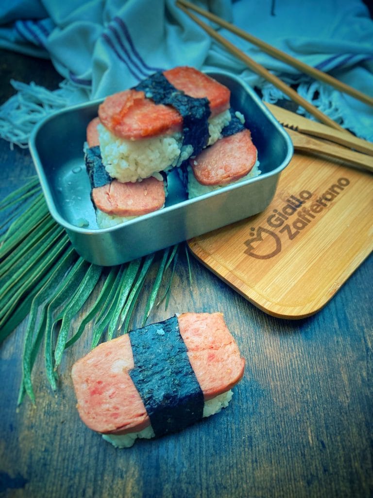 Spam Musubi is een snack bestaande uit een gegrild plakje spam bovenop een blok rijst, gewikkeld in nori zeewier, uit de traditie van de Japanse onigiri, ook wel o-musubi genoemd.