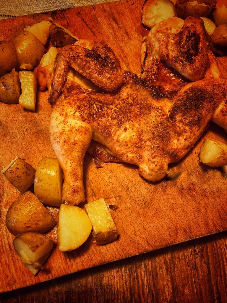 Spatchcock kip is de “gespleten kip” of “vlinderkip” omdat deze ontdaan is van de ruggengraat en opengeklapt wordt gekookt.