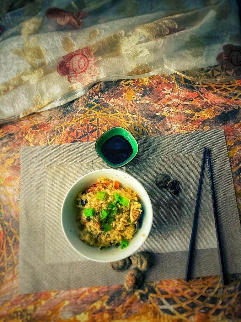 🔺De naam Takikomi Gohan betekent letterlijk “gekookt met rijst”, omdat het wordt bereid door het toevoegen van de ingrediënten, de bouillon en de kruiden bij de rauwe rijst en deze samen te koken.
