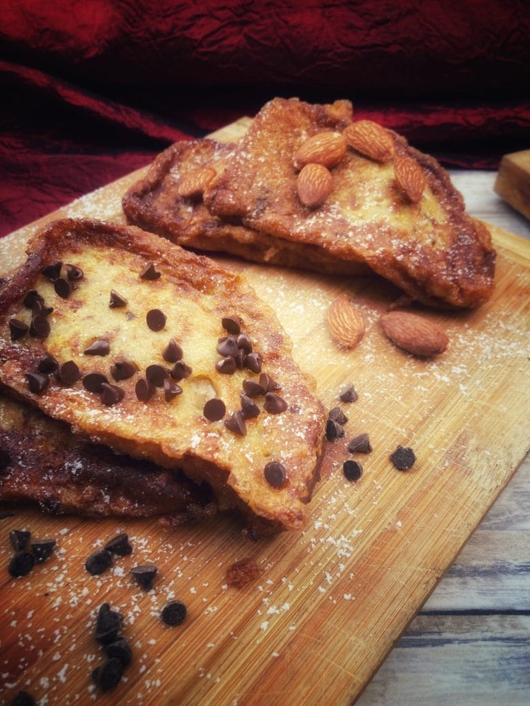 Voor mijn torrijas met suiker, kaneel en amandelen en met chocolade knoppen.