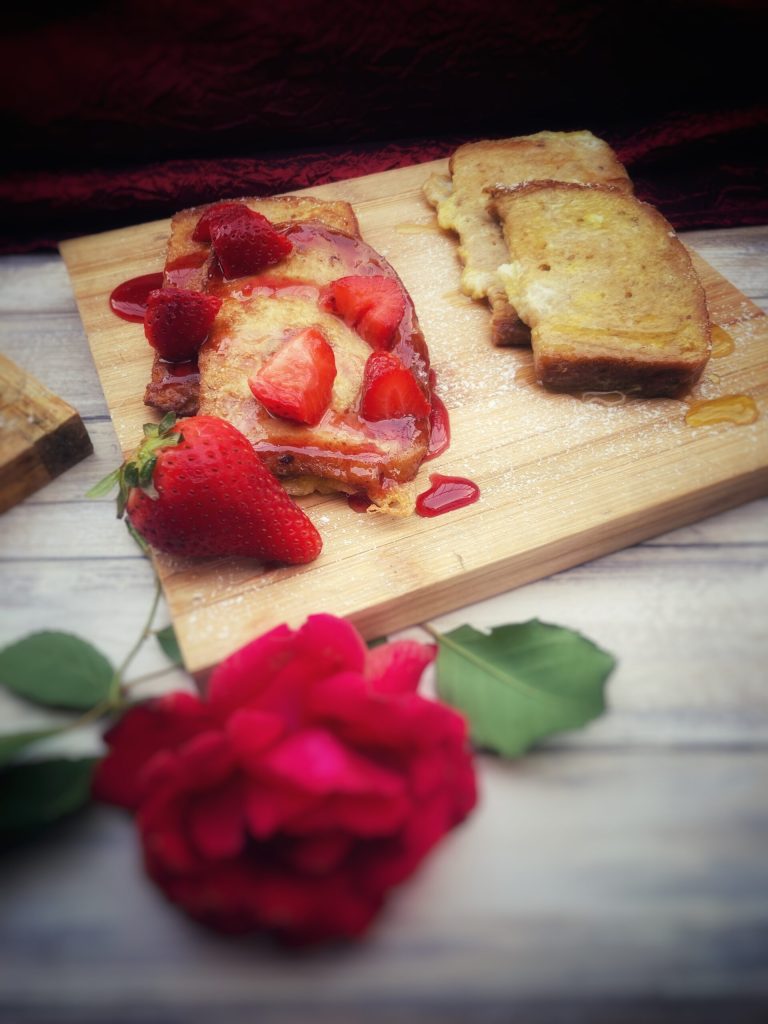 • Met aardbeiensiroop en verse aardbeien en met honing.