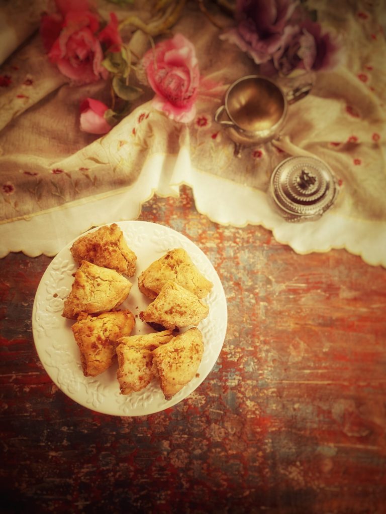 Mijn versie van tvorogli pechenyelar is glutenvrij, met gebruik van rijstmeel in plaats van tarwemeel.
