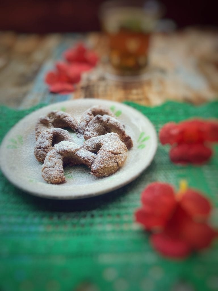 Het deeg is een zanddeeg met bloem, boter, suiker, gemalen amandelen (of hazelnoten), gevormd tot een halve maan (in het Duits kipferl).