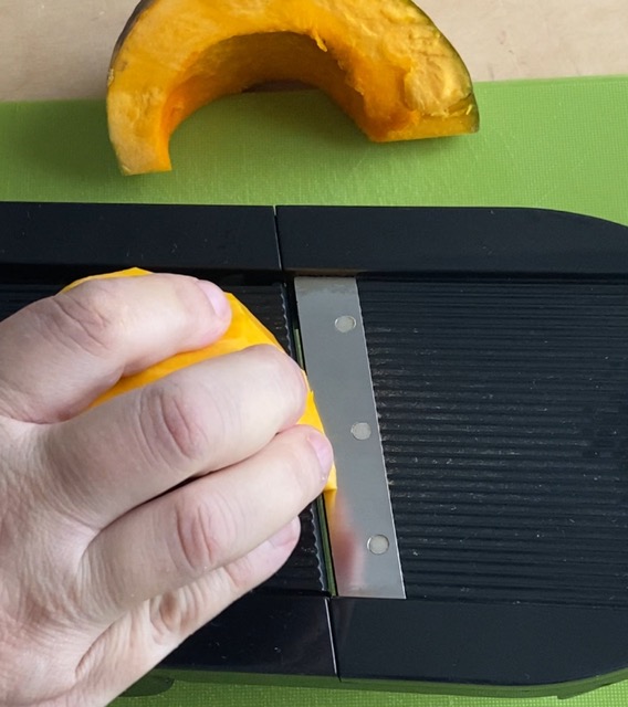 Cortar as fatias de abóbora de cerca de um centímetro.