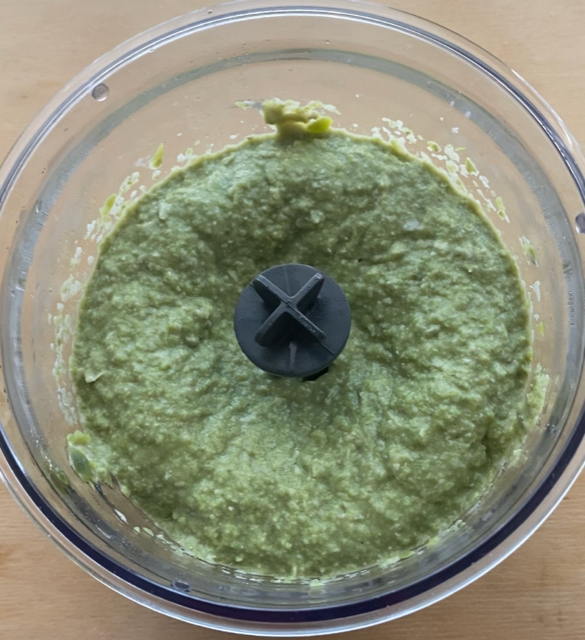 Bata as favas com um dente de alho, adicionando duas colheres de água.