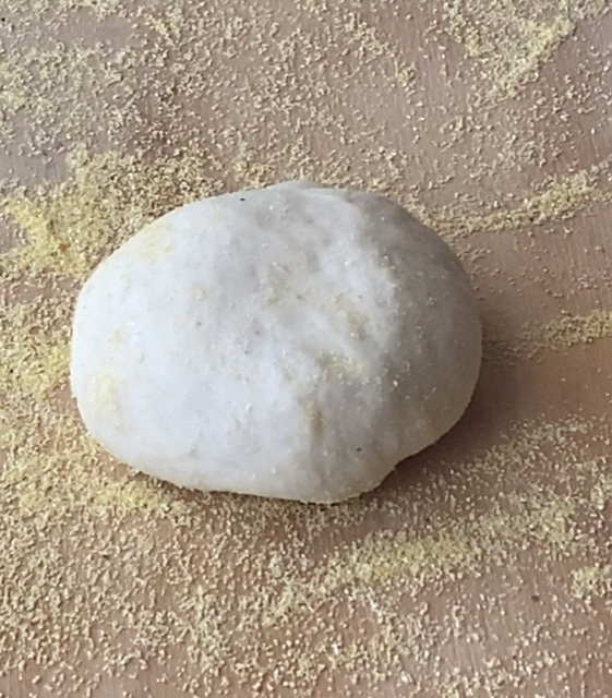 Deixe a massa crescer, após uma hora divida-a em quatro partes. Polvilhe a superfície com farinha de milho.