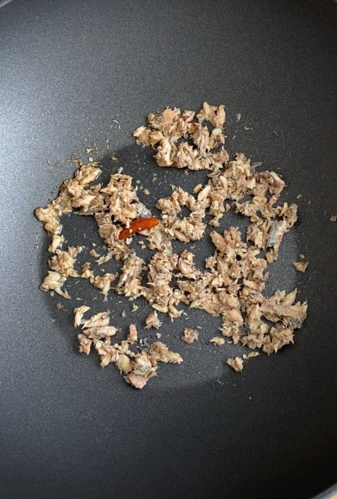 Aqueça um fio de óleo, adicione um dente de alho picado e uma pimenta em fatias. Deixe dourar e depois adicione as anchovas, amasse-as e deixe-as derreter no óleo.
