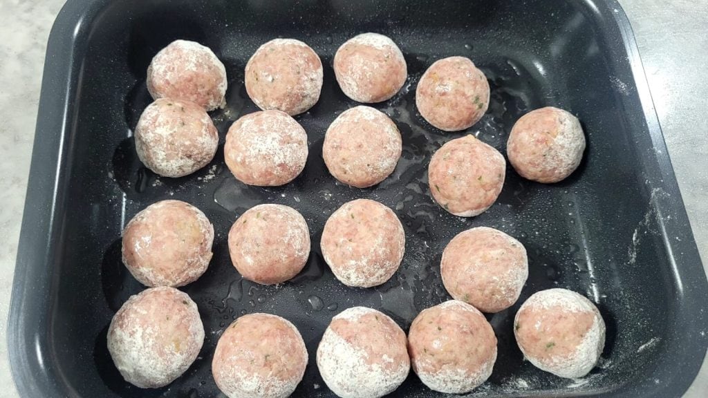 Pegue outra tigela, coloque farinha e passe as almôndegas cobrindo-as completamente