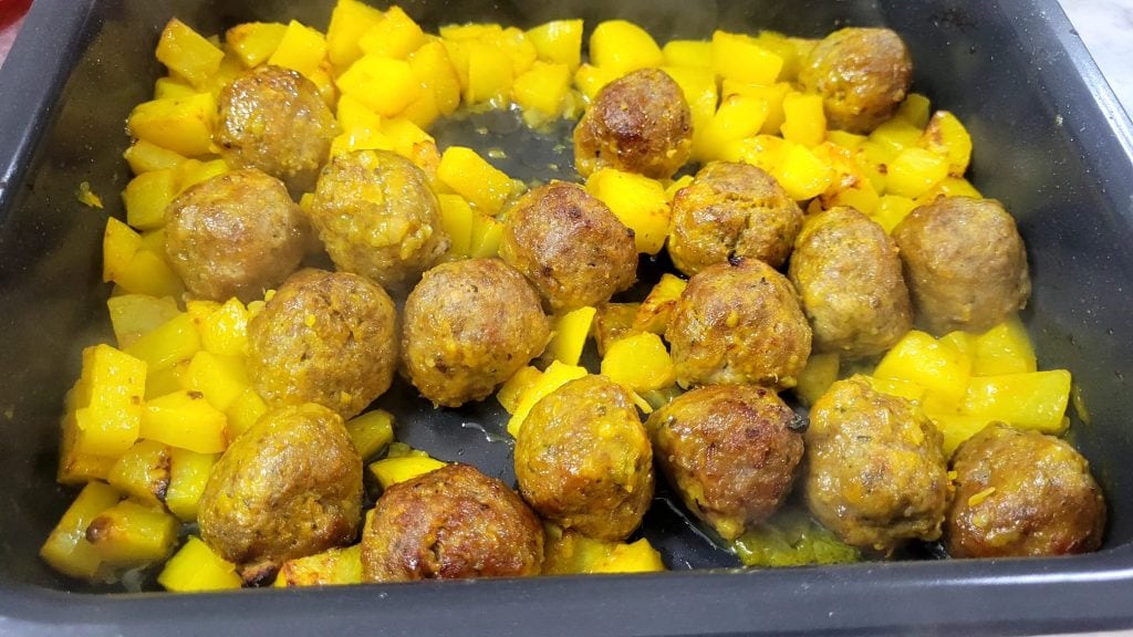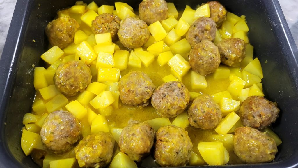 Ajuste o sal se necessário e sirva suas almôndegas com batatas ao açafrão… bom apetite!
