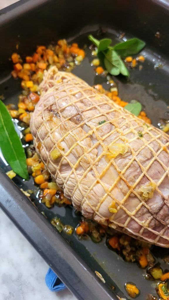 Para esta receita escolhi um corte de vitela, mas pode-se substituir também por um assado de porco mais econômico e igualmente saboroso e tenro.