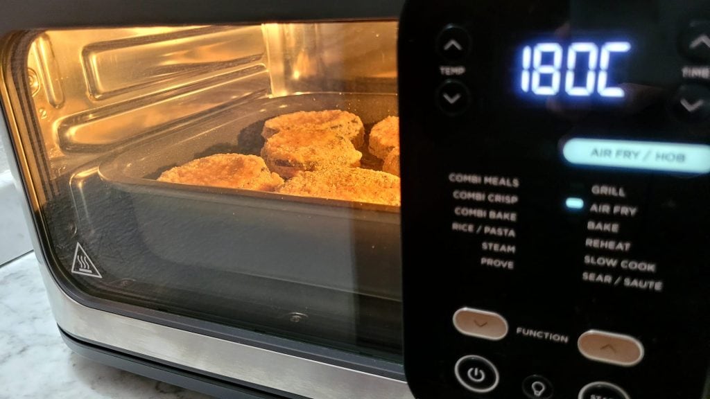 • Unte a grelha da fritadeira, posicione os bifes e borrife óleo na superfície de ambos os lados. Cozinhe a 180° x 15 minutos