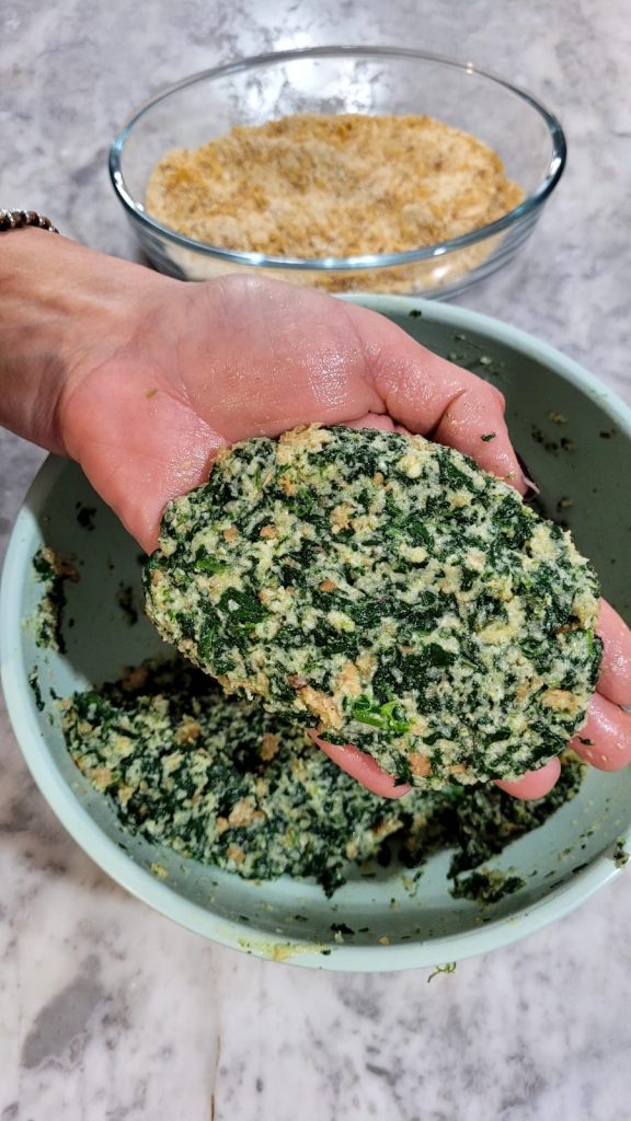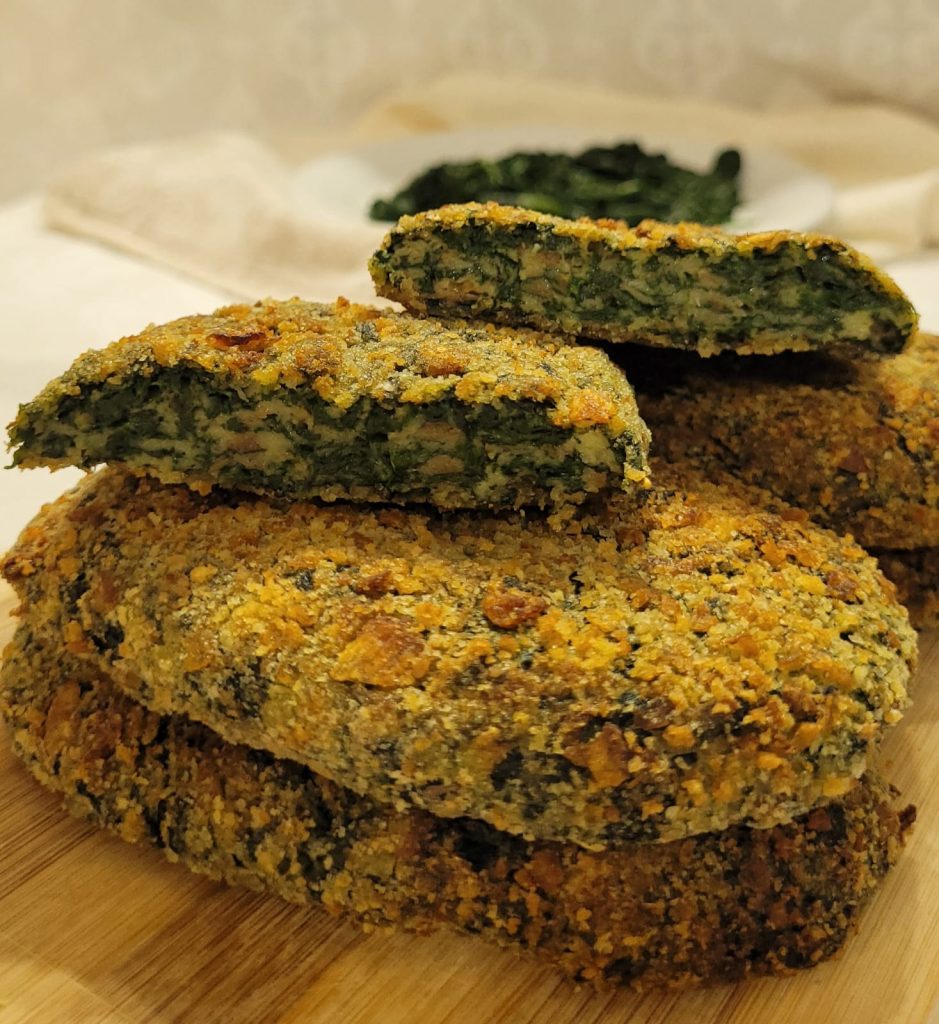 Bifes de Espinafre, cozidos na Airfryer, são uma ideia simples, saborosa e perfeita para fazer as crianças gostarem de espinafre. Macios por dentro, dourados e crocantes por fora, são preparados em poucos minutos: a Airfryer permite obter uma crosta crocante com muito pouco óleo, tornando a receita mais leve, mas ainda assim saborosa. Ideais para um jantar rápido, como um segundo prato vegetariano, mas também ótimos como finger food saboroso. Podem ser preparados com antecedência e cozidos em poucos minutos. Adicionei algumas cornflakes trituradas à farinha de rosca, se você tiver experimente e verá a crocância.