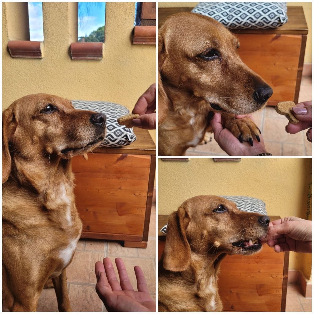 Aqui está Mia experimentando seus biscoitinhos pela primeira vez🐶❤