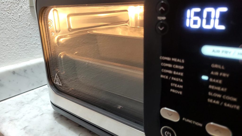 Pré-aqueça a airfryer por 3 minutos e asse a 160° por 35 minutos. Faça o teste do palito, mas não antes de 20 minutos de cozimento