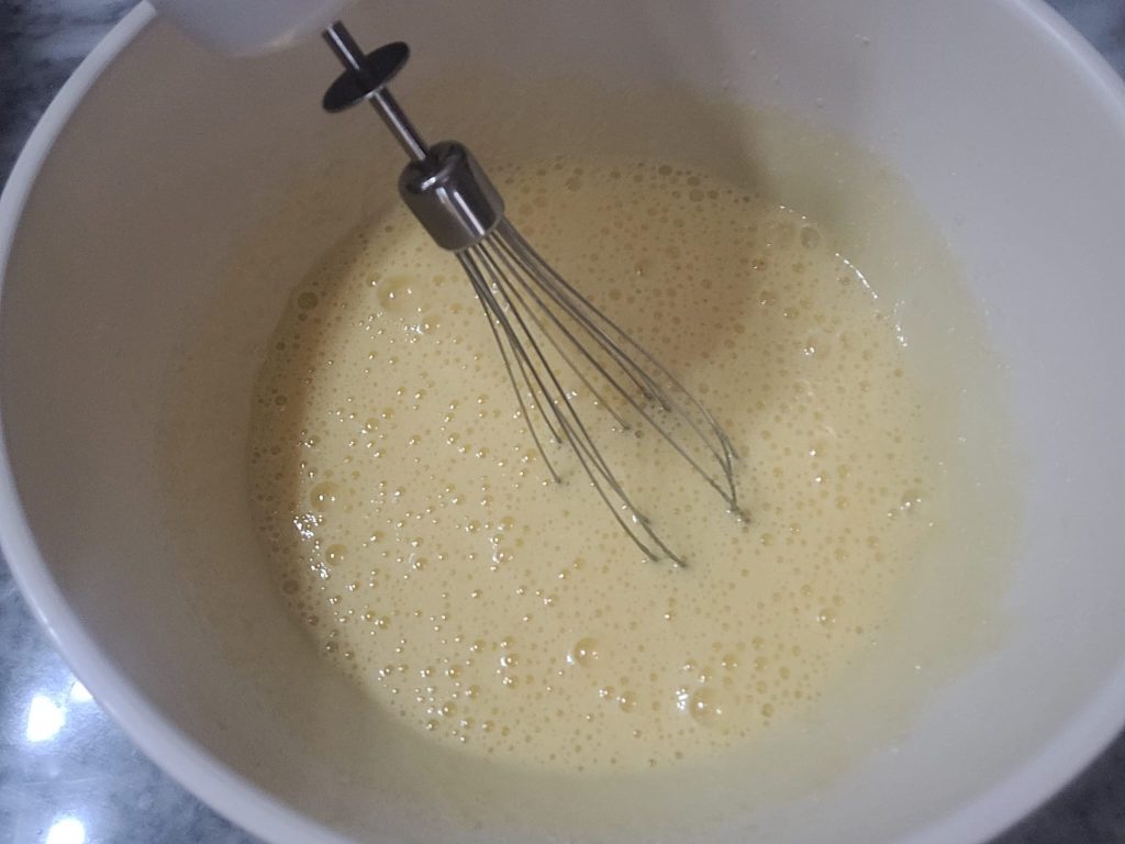 Incorpore toda a mistura de ovos, açúcar e iogurte e misture até obter uma massa lisa e homogênea, sem grumos