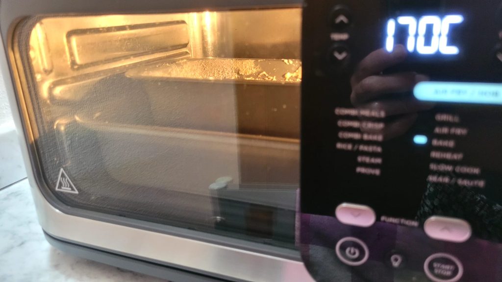 Modo Air Fry, programa Bake 175 graus x 30 minutos.