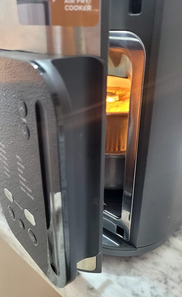 Após o término da cocção, deixe o bolo dentro por 5 minutos com a porta da fritadeira entreaberta