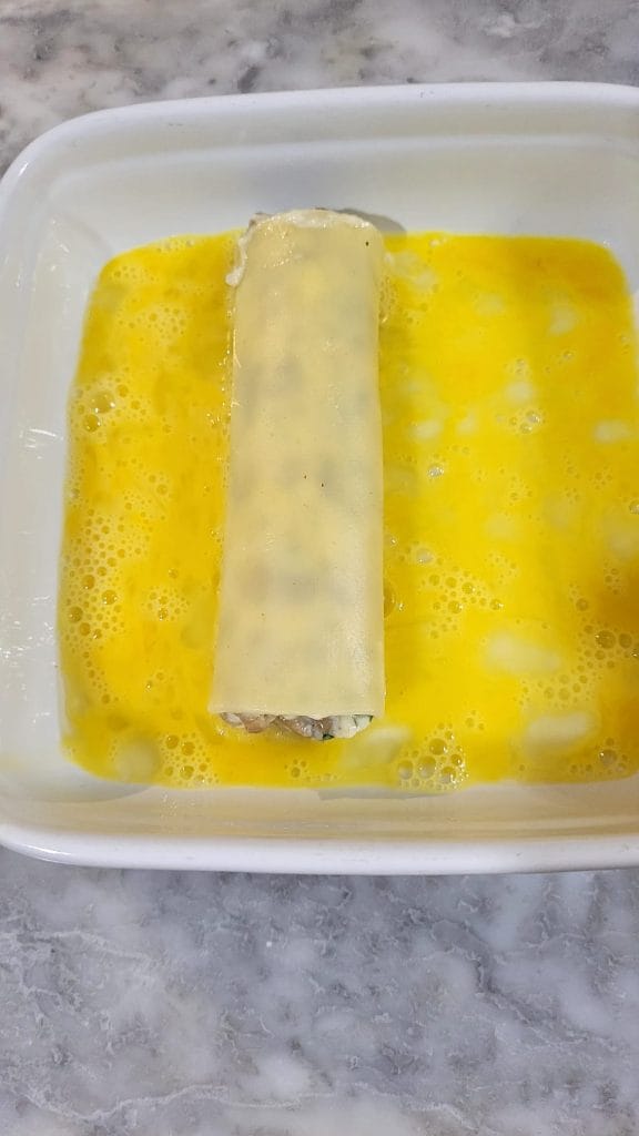 • Em uma tigela, bata o ovo e mergulhe os canelones, girando-os com a ajuda de um garfo, para que a massa absorva bem o ovo