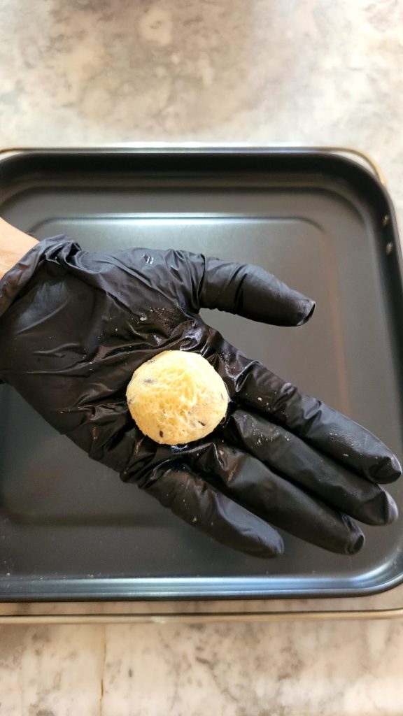 Agora você pode formar os seus biscoitos. Pegue um pouco de massa e forme bolinhas