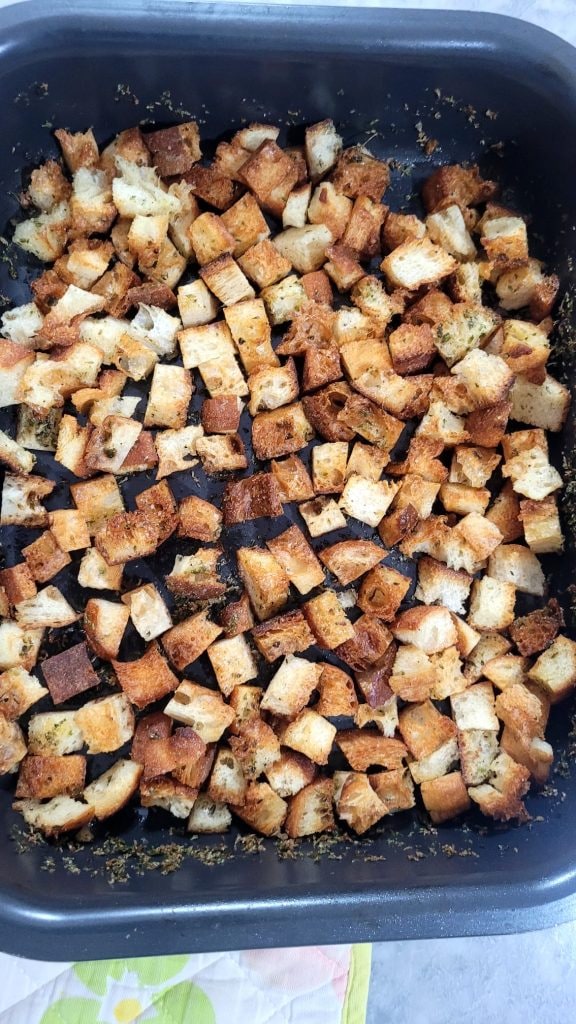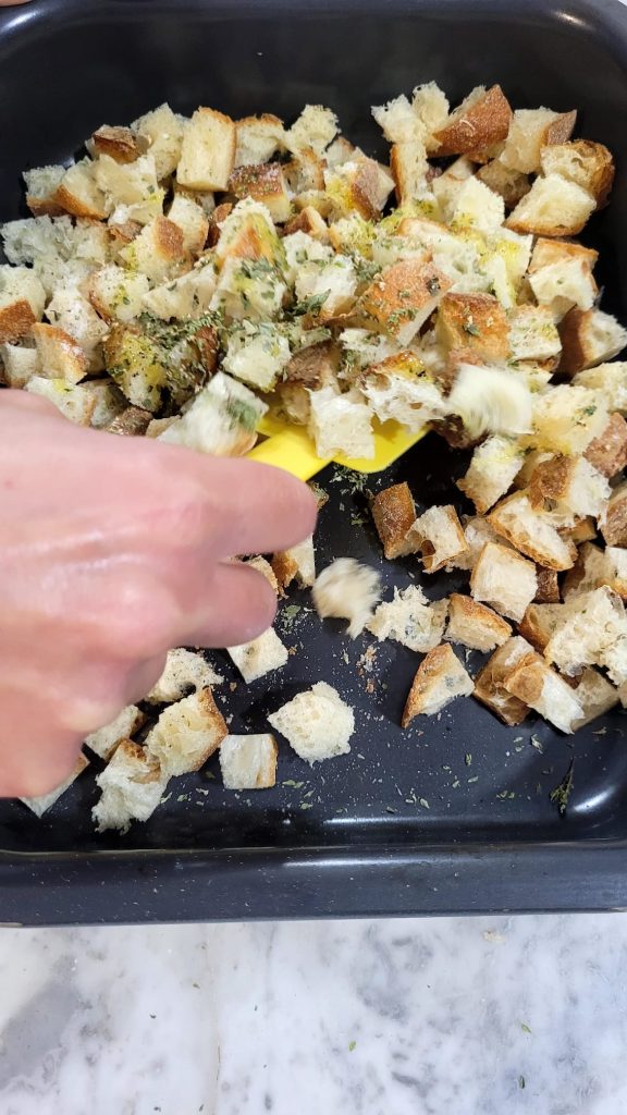 • Corte o pão em cubos de tamanhos mais ou menos iguais
