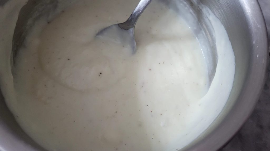 Para a preparação do molho bechamel, siga os passos da receita de Rosinhas de Lasanha na Fritadeira a Ar. Uma vez pronto, adicione o Grana Padano ralado e misture sempre com o batedor