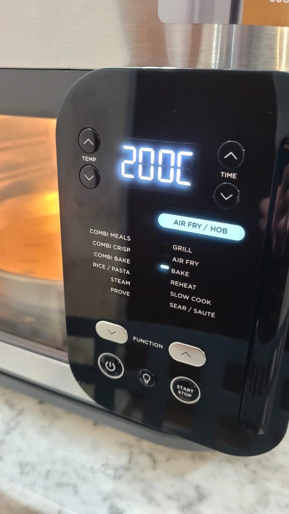 (Usei o programa “bake” que normalmente uso para bolos; se você não tiver esse programa, pode usar qualquer programa da sua airfryer ou ajustar manualmente temperatura e tempo)