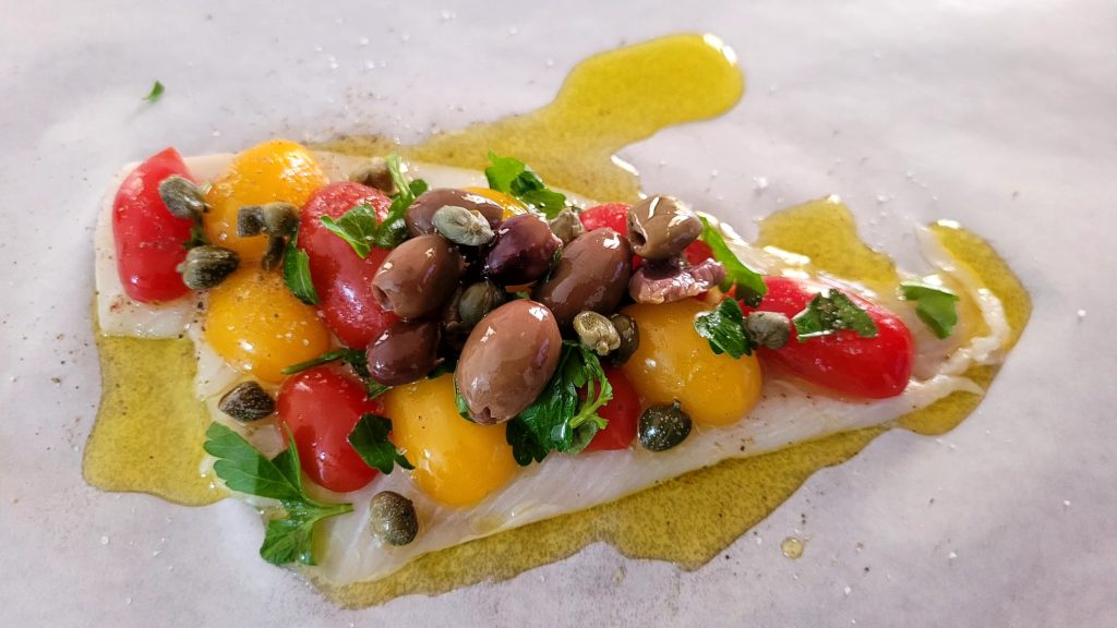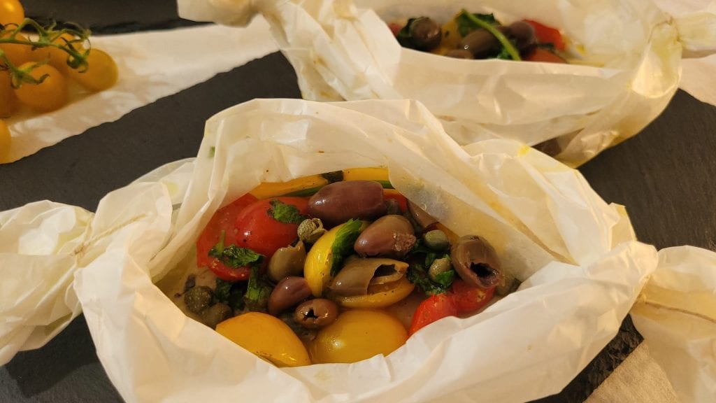 Os Filés de Linguado no Papillote, cozidos na Fritadeira a ar, são uma excelente escolha para quem segue uma dieta e precisa reduzir as gorduras, mas não quer abrir mão do sabor e para quem tem problemas de hipercolesterolemia. Para esta receita, além dos tomates cereja, escolhi usar azeitonas taggiasche e alcaparras em sal, mas os ingredientes podem ser adicionados ou substituídos de acordo com o gosto de toda a família.