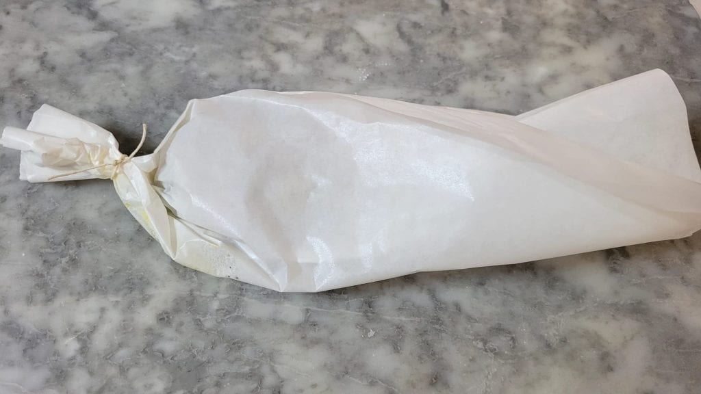 • Feche em forma de pacote e prenda as duas extremidades com o barbante de cozinha