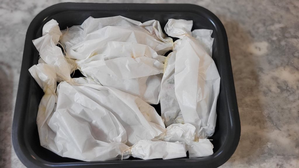 Agora vamos ver como preparar os Filés de Linguado no Papillote na Fritadeira a ar e deixo também as instruções para o cozimento no forno, você as encontra na seção dedicada ao final da receita.