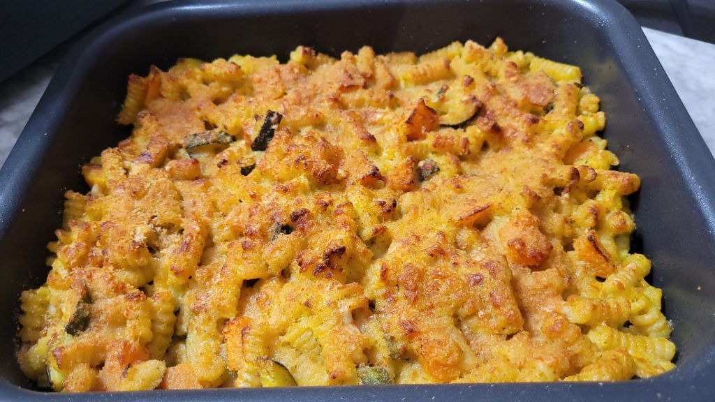 Eu usei fusilli furados, é um tipo de massa que gosto muito, mas você pode substituí-la por fusilli ou penne clássicos. Quanto à variedade de abóbora, usei a moscada, que tem um sabor muito delicado e doce.