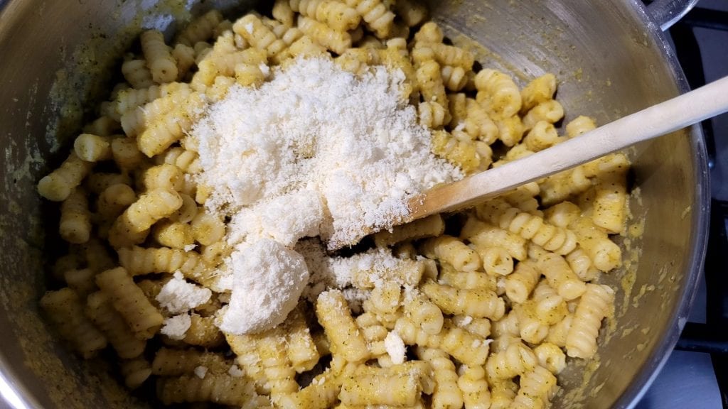 • Adicione o grana ralado e misture novamente. Se a massa parecer seca, você pode adicionar um pouco mais de água de cozimento