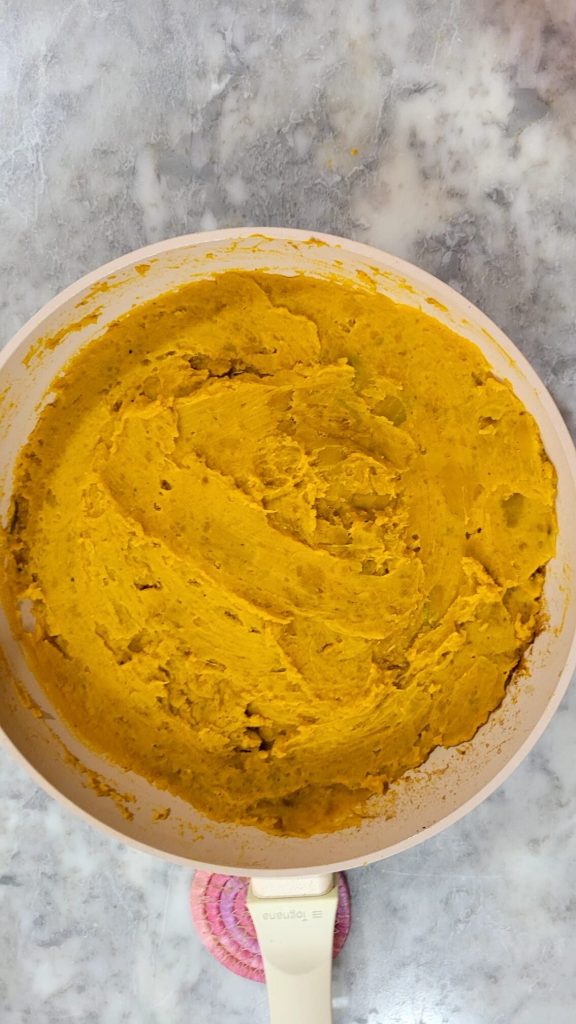 Quando a abóbora estiver suficientemente macia, elimine o alho, a sálvia, o alecrim e reduza a abóbora a um purê, amassando com um garfo. Reserve