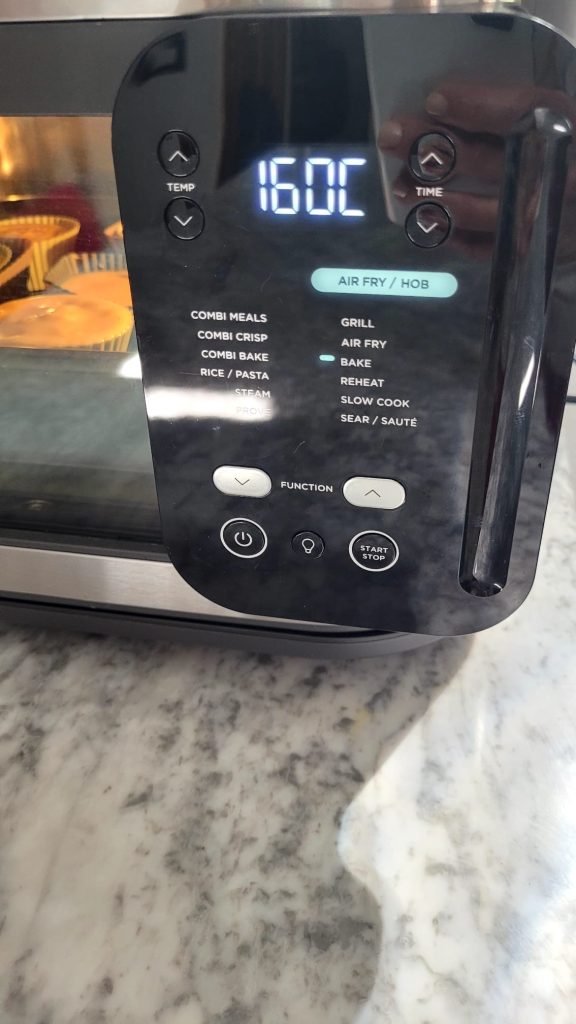• Pré-aqueça a airfryer a 160°C por 2/3 minutos, coloque as forminhas na grade e cozinhe sempre a 160°C por 25 minutos