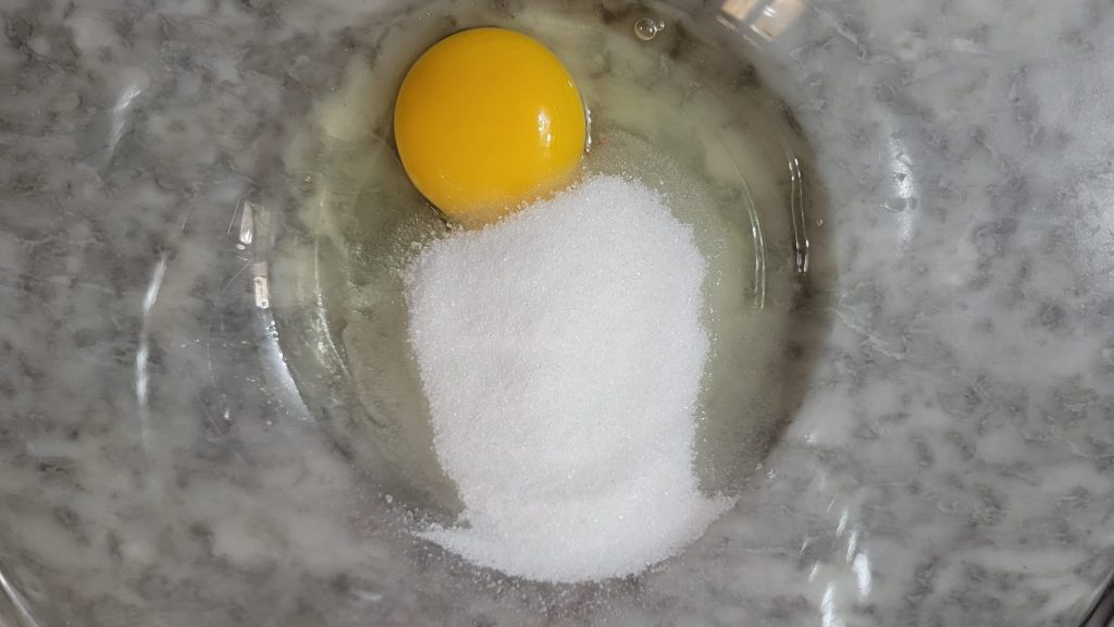 • Em uma tigela, bata o ovo com o açúcar usando a batedeira elétrica