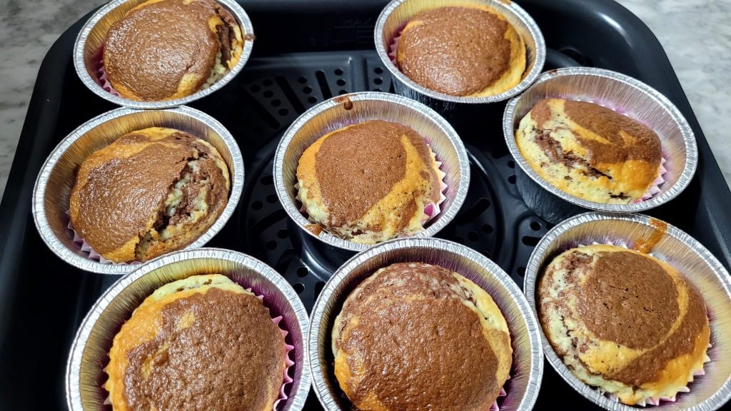 Cozimento no forno dos Muffins Marmorizados de Coco e Cacau na Airfryer