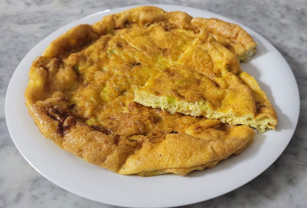 O omelete de cebolinhas frescas é um prato muito simples e com poucos ingredientes podemos saborear um prato rico em sabor. Perfeito como segundo prato, mas também adequado como entrada servido em porções individuais, por exemplo, em pequenos quadradinhos ou para um buffet… é ótimo também frio. O omelete na fritadeira elétrica é um daqueles pratos que sai perfeito: fofo e leve e tenho certeza que esse com as cebolinhas frescas você vai gostar.