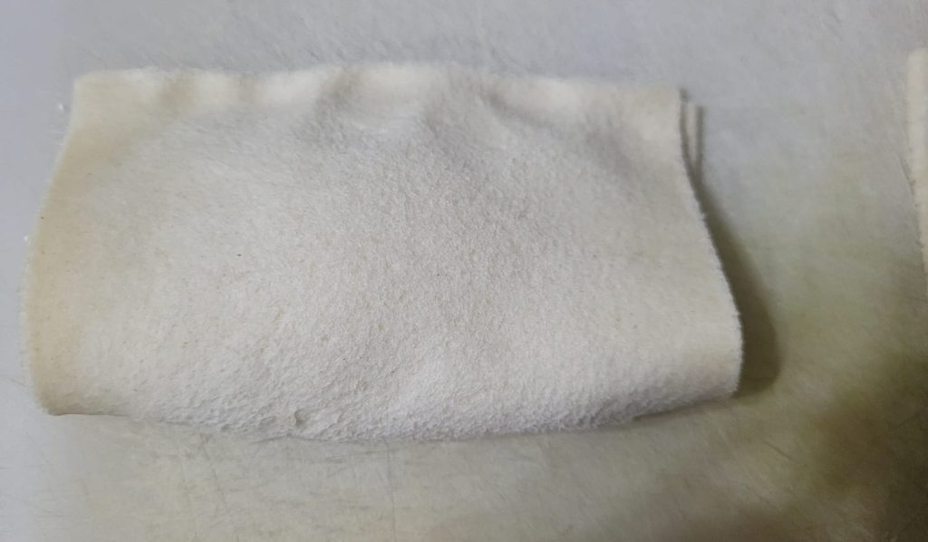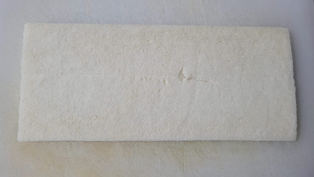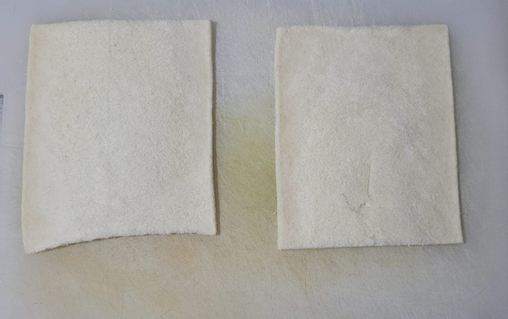 Dobre a fatia de pão ao meio e sele-a com os dedos