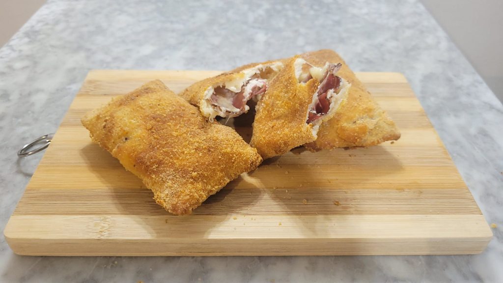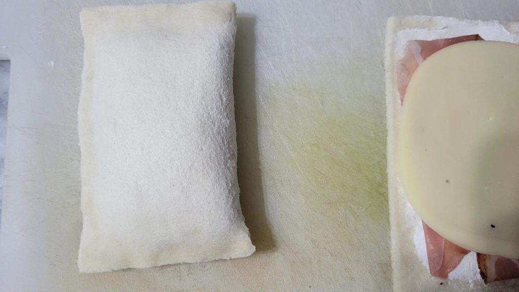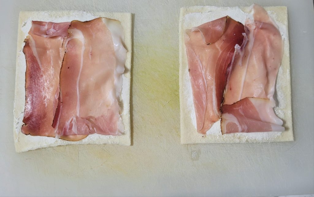 Para esta receita, usei o clássico pão para sanduíches comprido que dividi ao meio e recheei com queijo cremoso, speck e provolone doce em fatias. São ótimos também com presunto cozido e fontina em fatias. Vocês devem experimentá-los porque são muito bons e crocantes!!