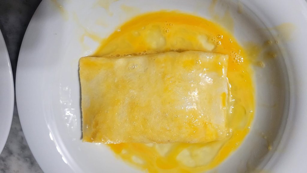 Agora passe-os na farinha de rosca. Com a ajuda das mãos, compacte bem e passe novamente nas bordas para selá-los ainda mais, evitando que o recheio saia durante o cozimento