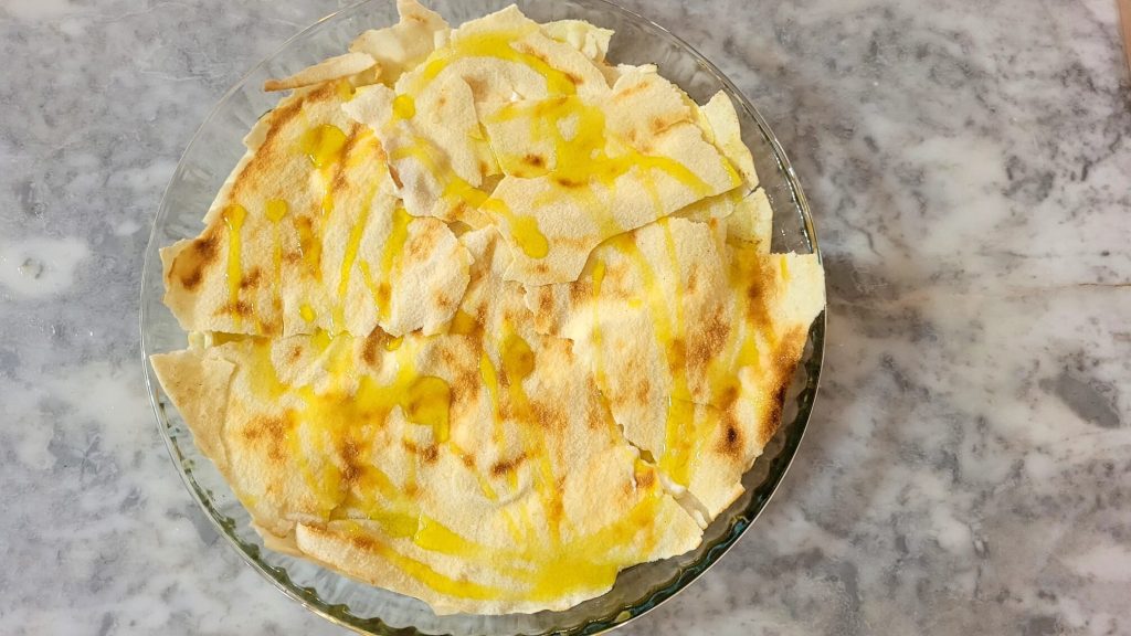 Pegue as folhas de pão carasau e molhe rapidamente com água para amolecê-las