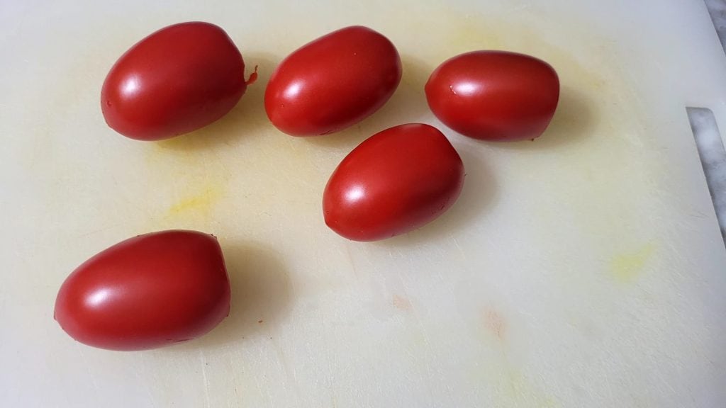 Lave e seque o tomate piccadilly e corte-o em pedaços