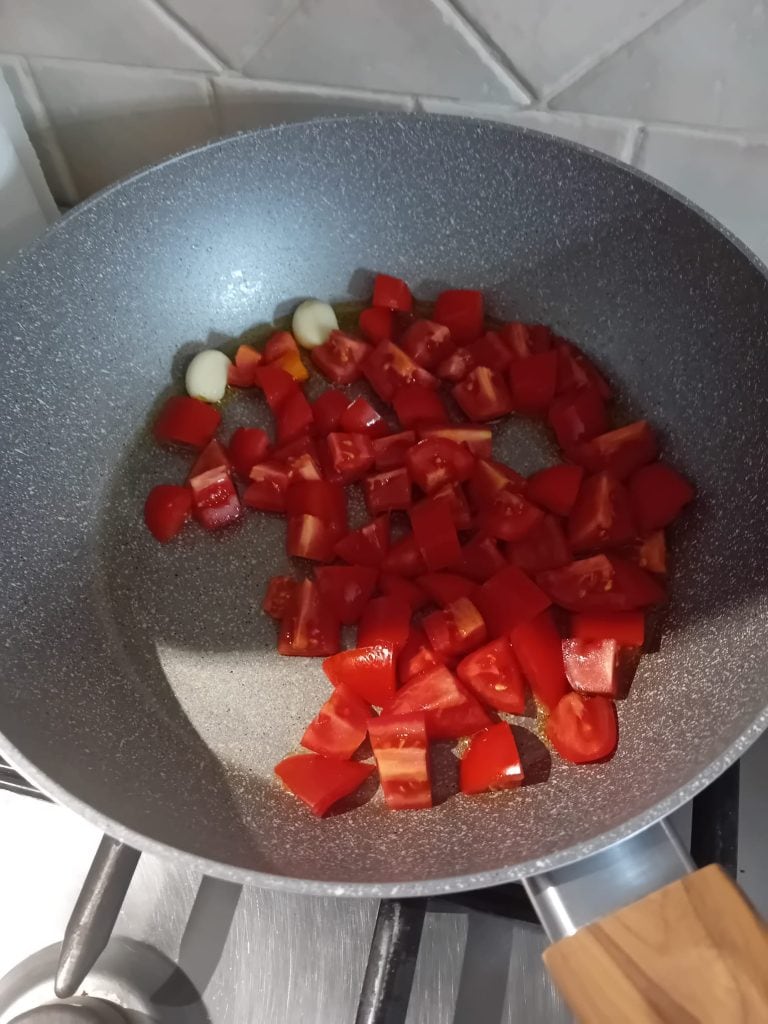 Transfira os tomates para a frigideira e deixe dourar por cerca de 10 minutos